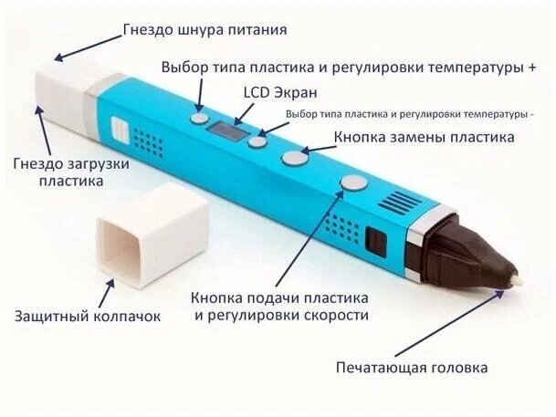 Безопасность этой 3Д ручки обеспечивается автоматическим отключением спустя 2 минуты бездействия и плотным колпачком, надевающимся на носик.