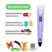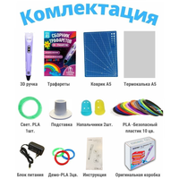 3D ручка MyRiwell RP100B + 50 м пластика (10 цветов, светящийся) + книжка с трафаретами + термокалька + подставка+коврик+напальчники. Фиолетовая: сравнение цен, характеристики, фото, актуальное наличие и цены.