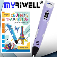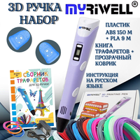 Купить 3d ручка Myriwell rp100b + ABS (15цветов по 10метров)+трафареты, фиолетовый цвет. с доставкой по всей России.