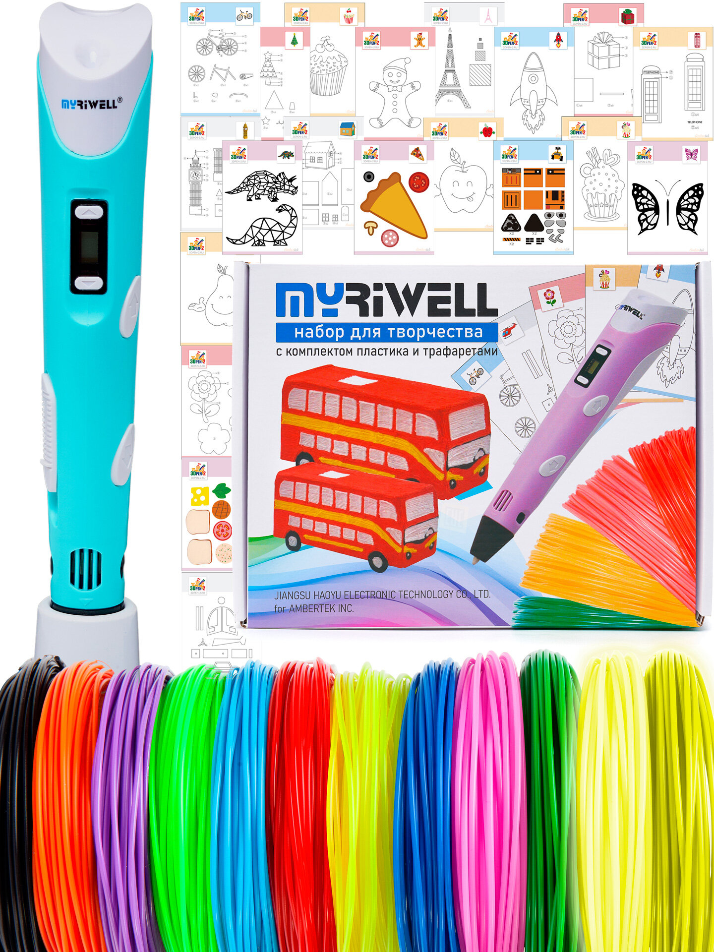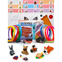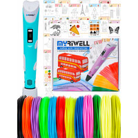 Купить 3D ручка Myriwell RP100B (цвет: голубой) с набором пластика PLA 12 цветов по 10 метров и набором трафаретов для 3D ручек с доставкой по всей России.