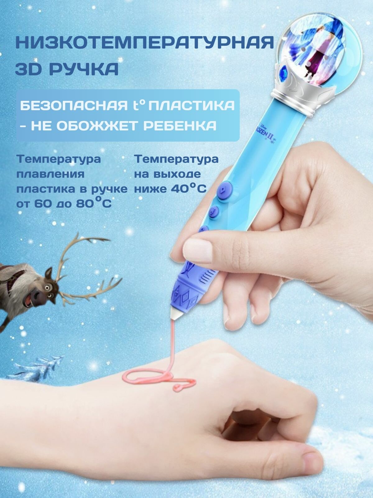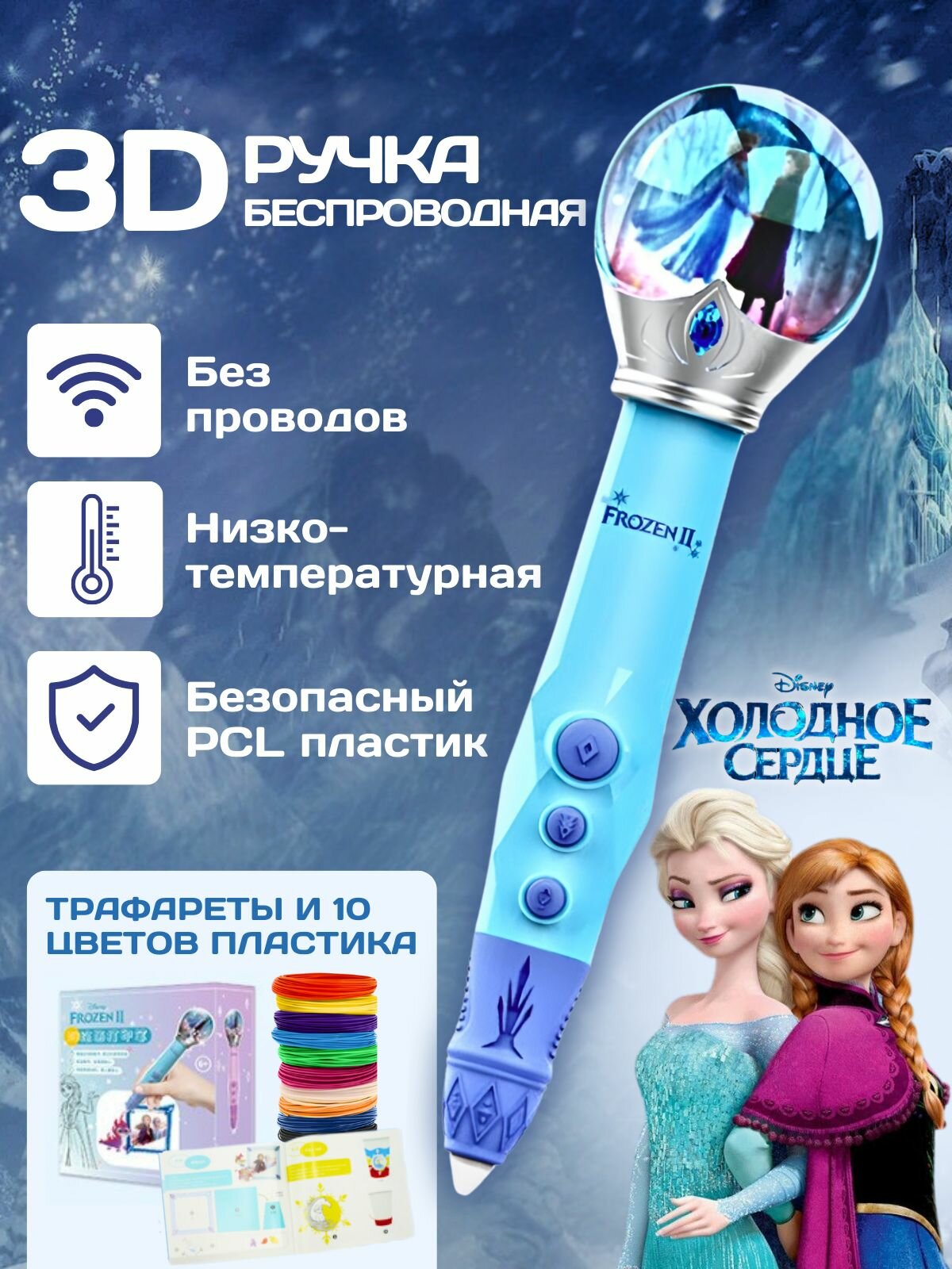 Купить 3д ручка с набором пластика и трафаретами Эльза Холодное сердце, 3d ручка беспроводная для девочек с доставкой по всей России.