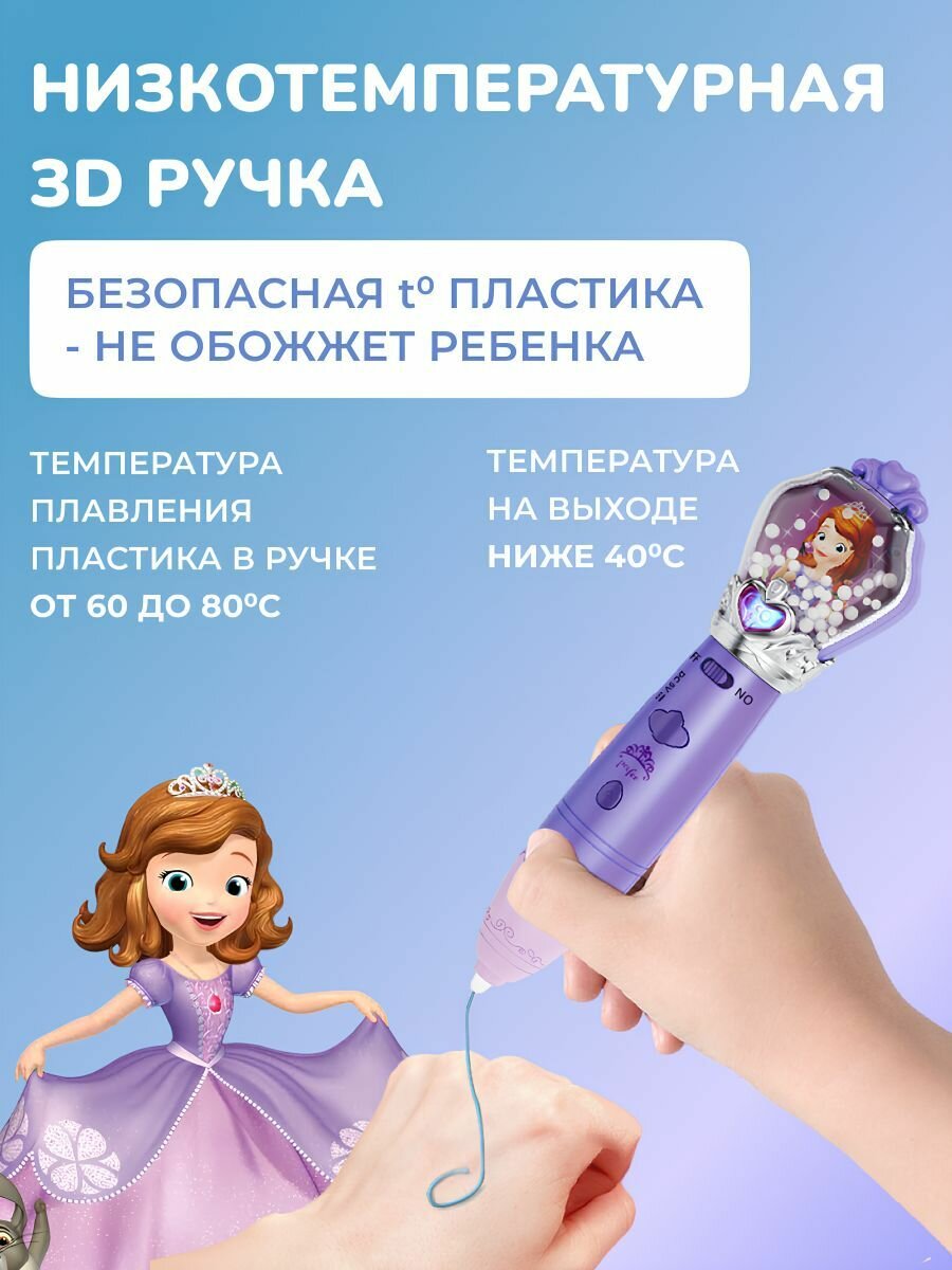 Купить 3д ручка с набором пластика и трафаретами Принцесса София, 3d ручка беспроводная для девочек с доставкой по всей России.