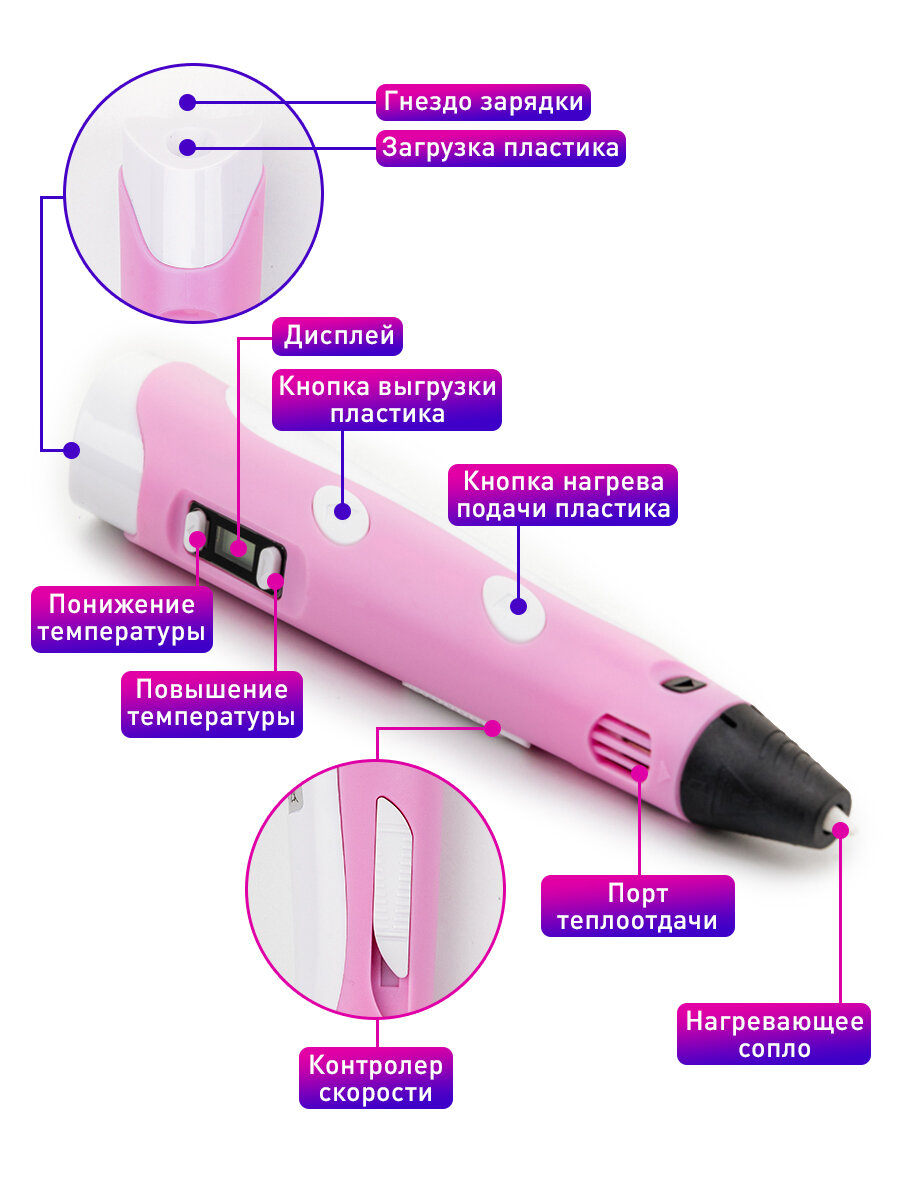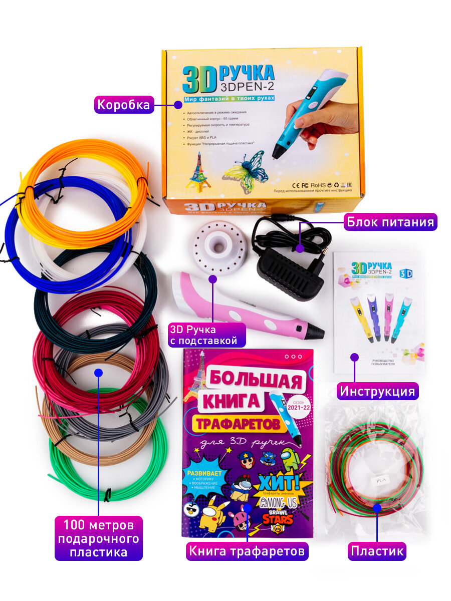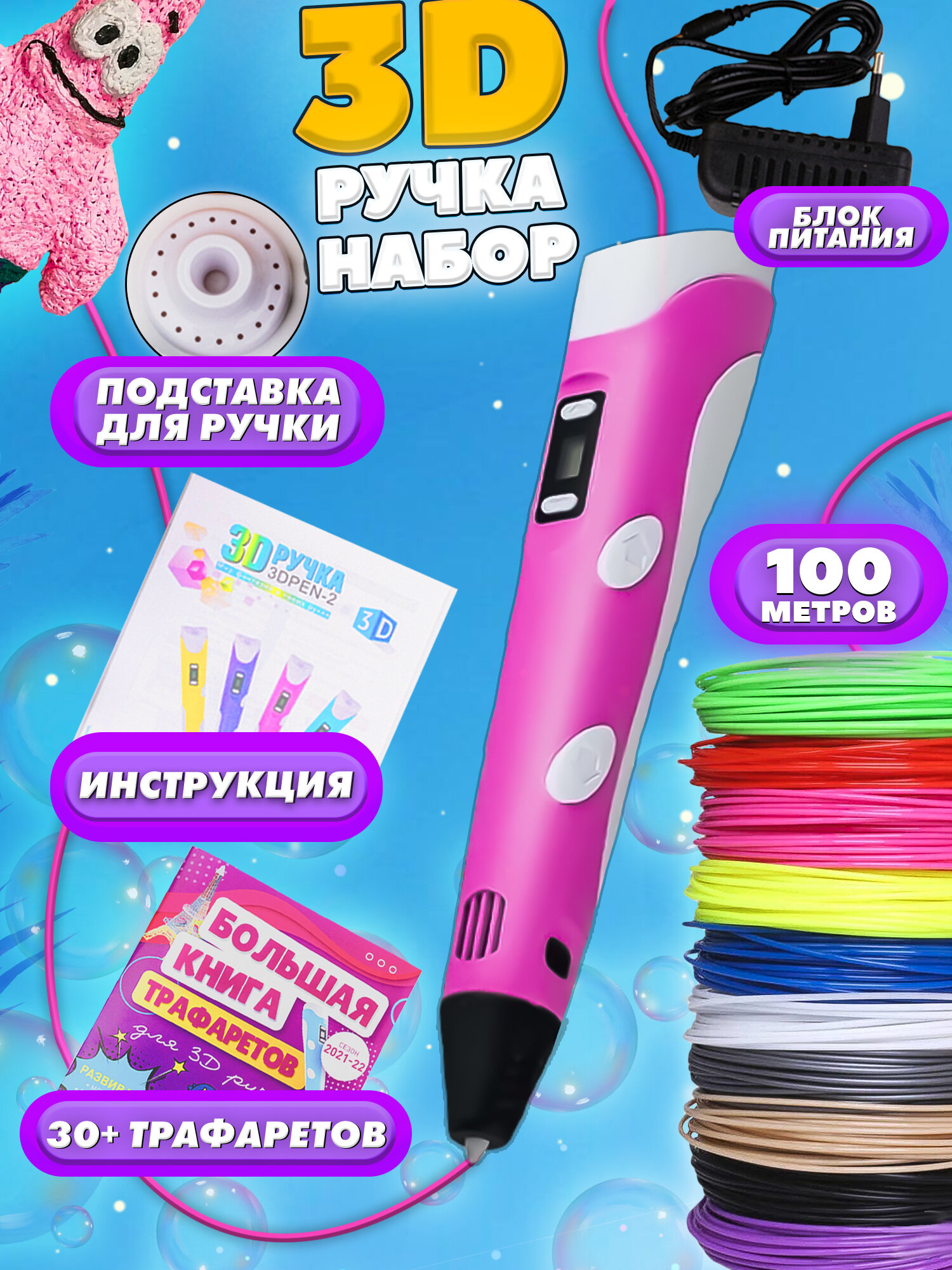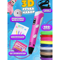 Купить 3д ручка с набором пластика (розовая) 3 д ручка с набором пластика и трафаретами 3 d ручка Набор для творчества Подарок для ребенка девочки мальчика с доставкой по всей России.