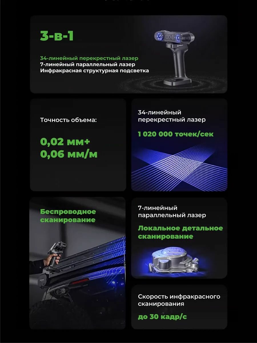 3D-сканер Creality RaptorX, портативный беспроводной сканер с метрологической точностью 0,02 мм, Промышленная синяя подсветка, Быстрый Wi-Fi 6: сравнение цен, характеристики, фото, актуальное наличие и цены.