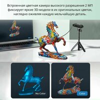 Встроенная 2-мегапиксельная цветная камера с высоким разрешением позволяет снимать яркие 3D-модели в их оригинальных цветах, оживляя каждую сложную деталь и обеспечивая 24-битное полноцветное сканирование.