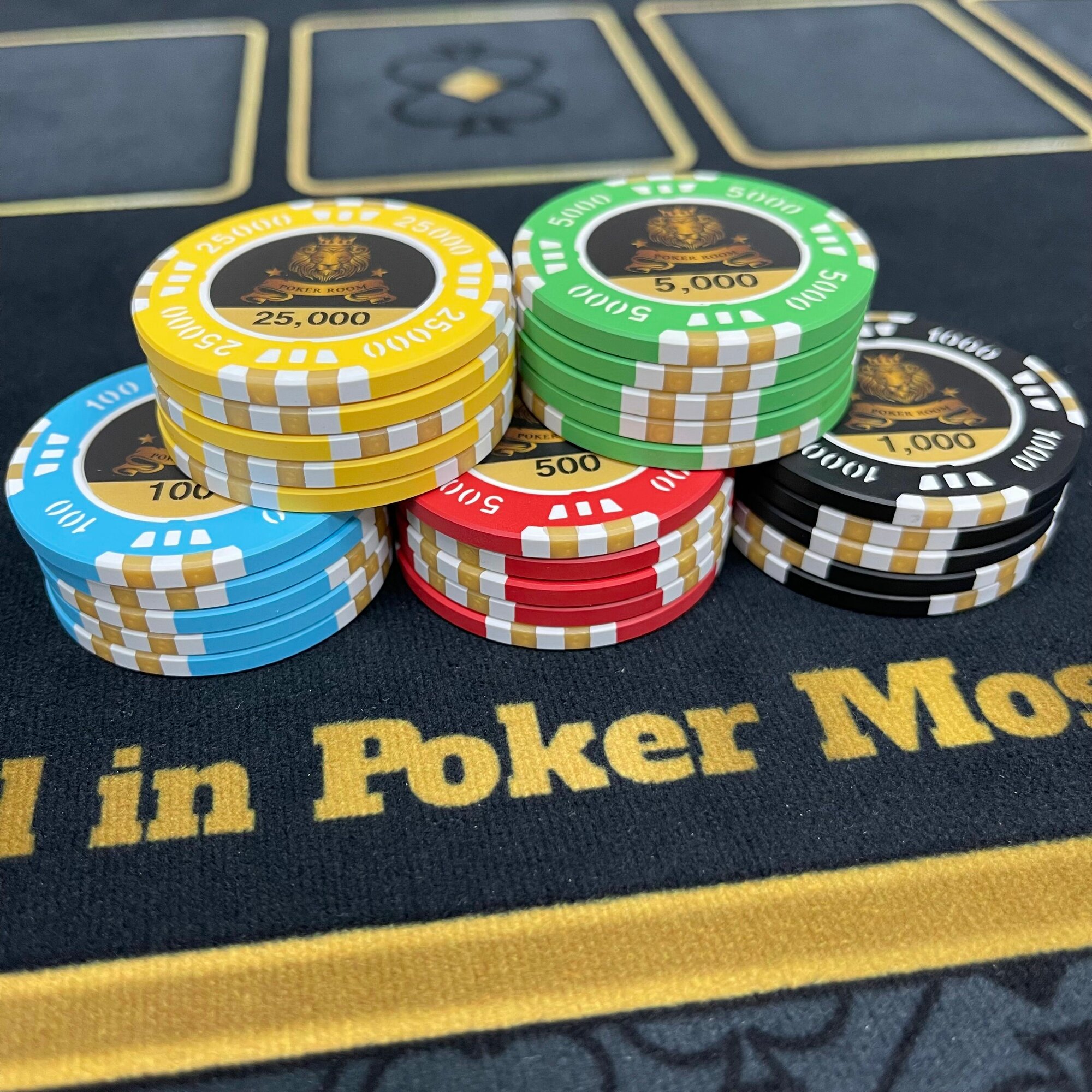 Такие фишки может заказать со своим дизайном только Казино или очень крупная компания, так как минимальный заказ на фабрике производителе начинается от десятка тысяч штук. Профессиональные 17,6 граммовые, обеспечивают прекрасное ощущение во время игры. Отчетливый звук и текстура делают ваш маленький покер-рум более профессиональным. Хорошее качество представлено на равномерно круглых, одинаковой толщины и веса.