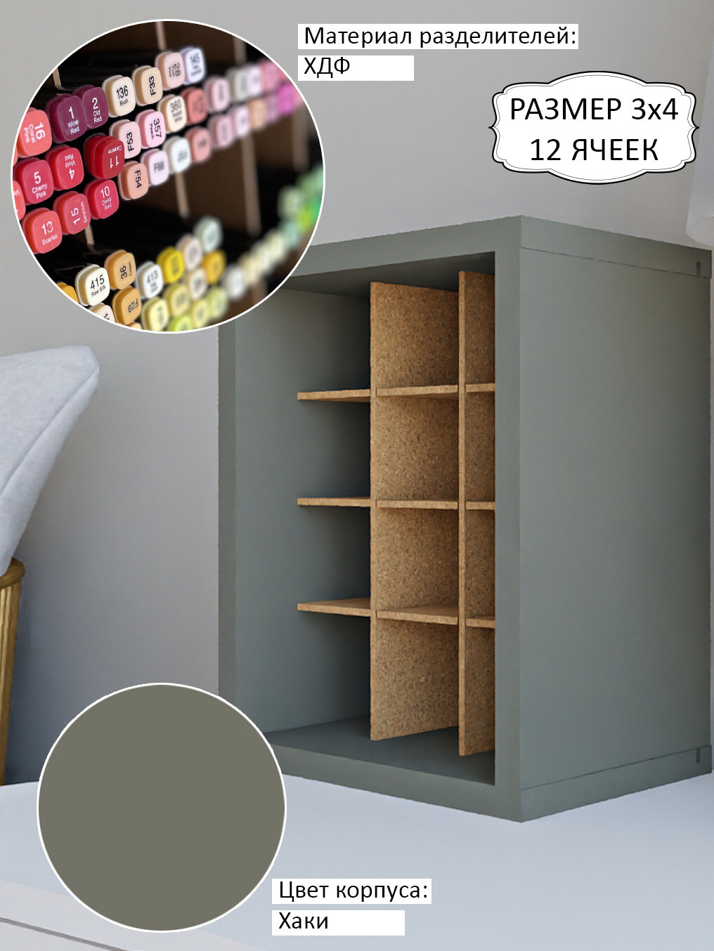 3х4 Бокс-органайзер стеллаж для хранения маркеров и канцелярии
