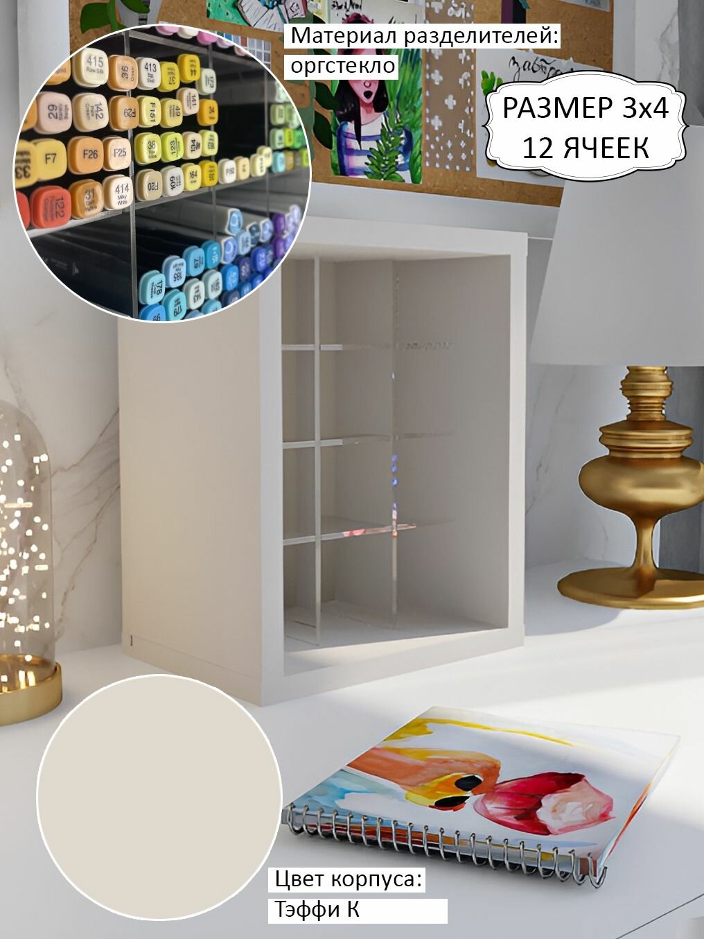 Купить 3х4 Бокс-органайзер стеллаж для хранения маркеров и канцелярии с доставкой по всей России.