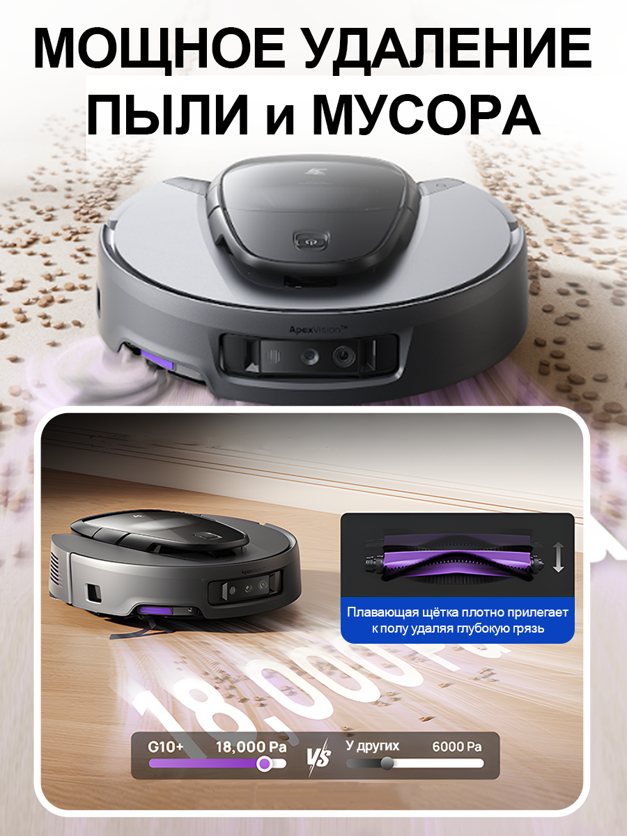 3i Робот-пылесос G10+,18000па, аккумулятор 5200mAh,Умная чистота,черный: сравнение цен, характеристики, фото, актуальное наличие и цены.