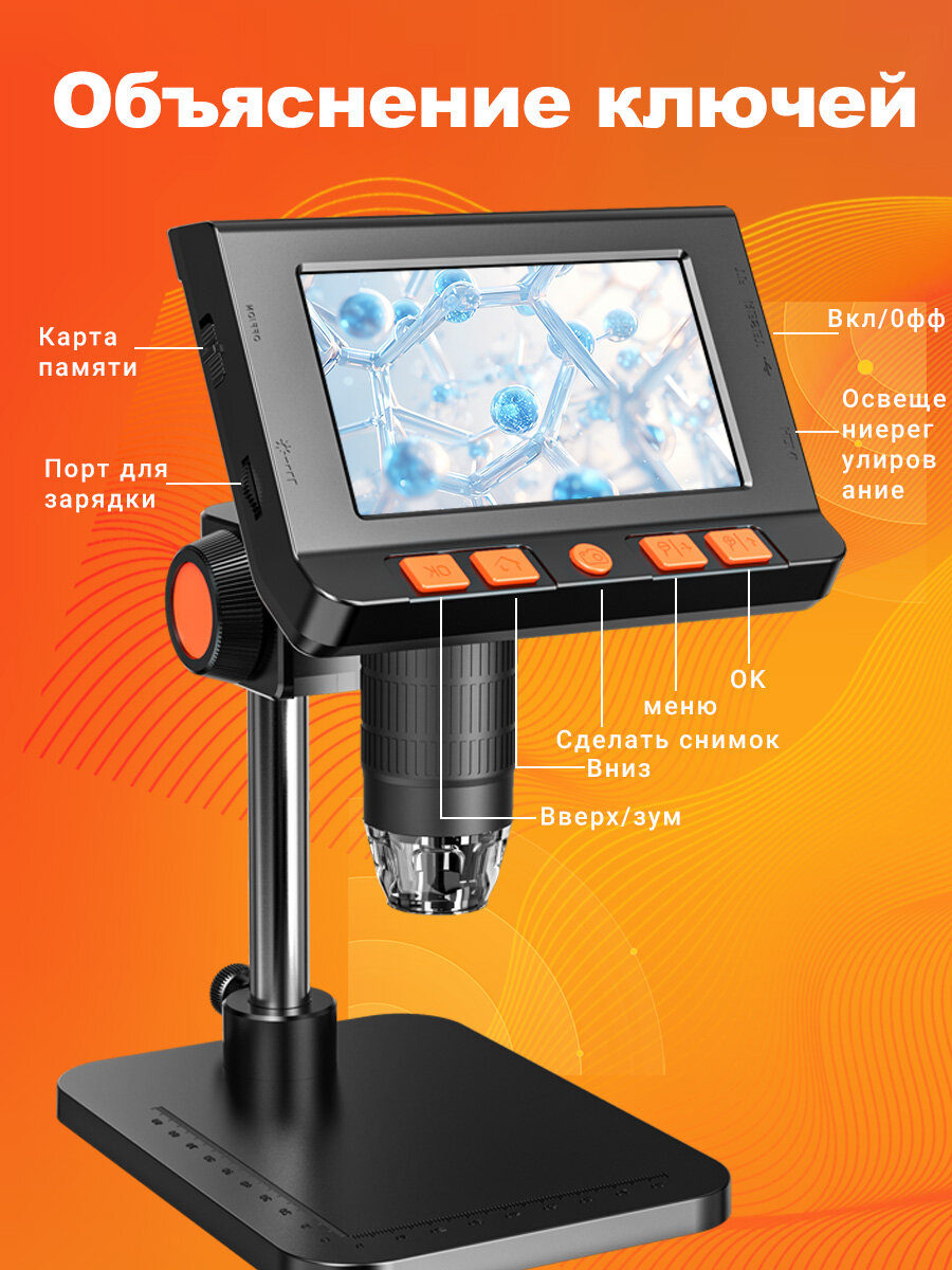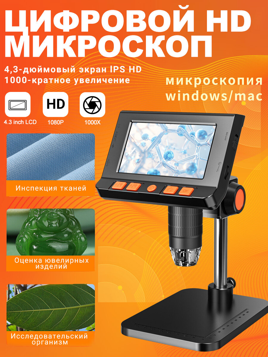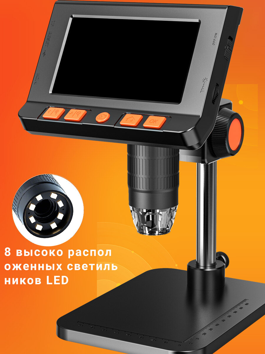 Купить 4.3-дюймовый цифровой микроскоп IPS, 2МП HD-объектив, паяльный микроскоп, 8 светодиодов, регулировка света с доставкой по всей России.