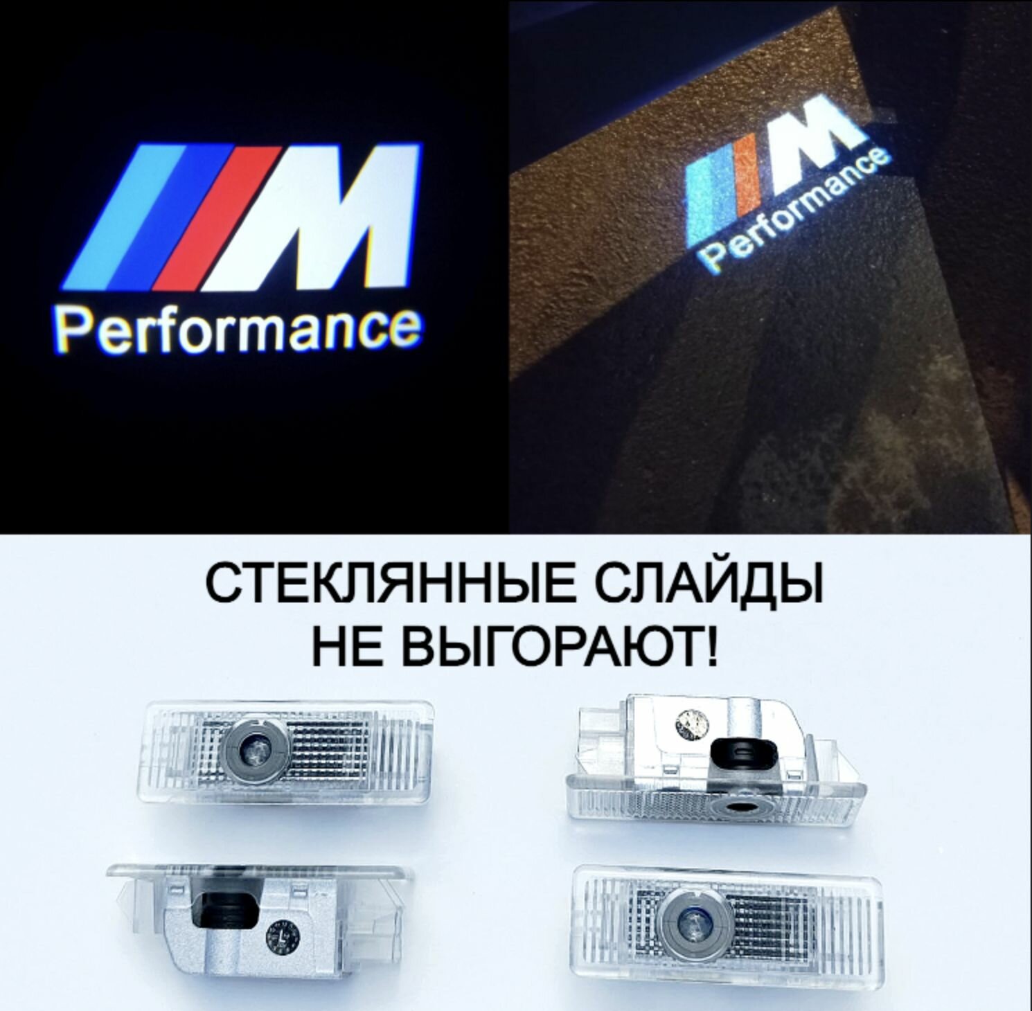 Купить BMW М Performance. 4 (четыре) плафона в двери премиум для автомобилей БМВ с лазерной проекцией логотипа М Перформанс. Стеклянные слайды. с доставкой по всей России.