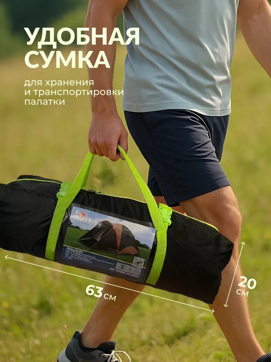 Палатка изготовлена из непромокаемого материала полиэстер (синтетический материал повышенной плотности с водонепроницаемой и водоотталкивающей пропитками и серебряным покрытием), который не позволит просочиться ни одной капле.