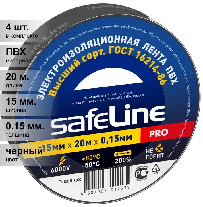 Купить (4 шт.) Изолента ПВХ черная 15мм 20м Safeline с доставкой по всей России. (4 шт.) Изолента ПВХ черная 15мм 20м Safeline: сравнение цен, характеристики, фото, актуальное наличие и цены.