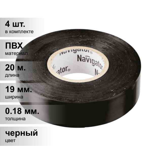 Купить (4 шт.) Изолента ПВХ черная 19мм 20м Navigator NIT-A19-20/BL 71 110 с доставкой по всей России. (4 шт.) Изолента ПВХ черная 19мм 20м Navigator NIT-A19-20/BL 71 110: сравнение цен, характеристики, фото, актуальное наличие и цены.