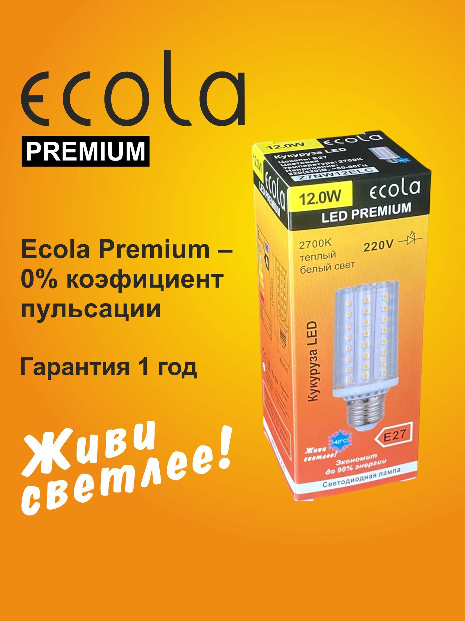 Лампы серии Ecola Premium: 0% коэффициент пульсации. При низком напряжении сохраняют яркость - до 140-160 V. Работают на морозе до -40°С.