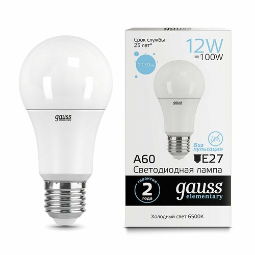 Купить (4 шт)Лампа Gauss Elementary A60 12W 1170lm 6500K E27 LED 1/10/50 с доставкой по всей России. (4 шт)Лампа Gauss Elementary A60 12W 1170lm 6500K E27 LED 1/10/50: сравнение цен, характеристики, фото, актуальное наличие и цены.