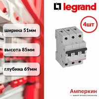 4 шт. Legrand RX3 Автоматический выключатель 3P 6А (C) 4,5kA, 419705