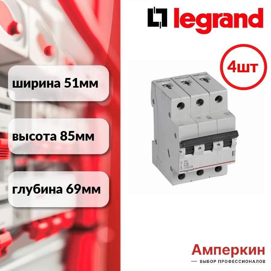 Купить 4 шт. Legrand RX3 Автоматический выключатель 3P 6А (C) 4,5kA, 419705 с доставкой по всей России.