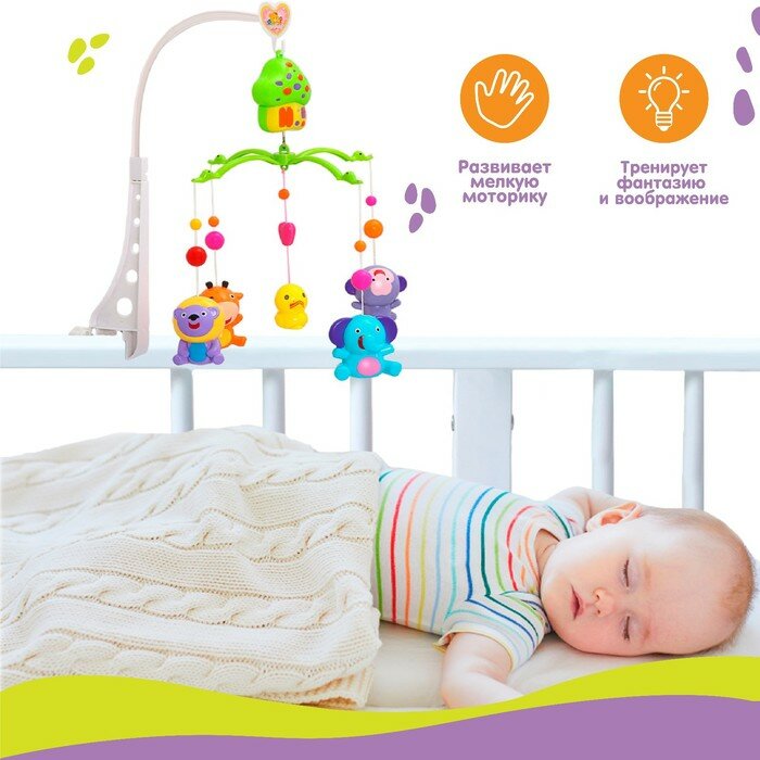 Купить 4 шт. Мобиль музыкальный на кроватку Крошка Я «Домик. Джунгли №2», заводной с доставкой по всей России.