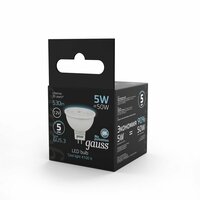 Купить 4шт/уп. Лампа LED Софит 5Вт 12B MR16 GU5.3 530Лм 4100К Свет Нейтральный белый арт. 201505205 Gauss, уп. 4шт с доставкой по всей России.
