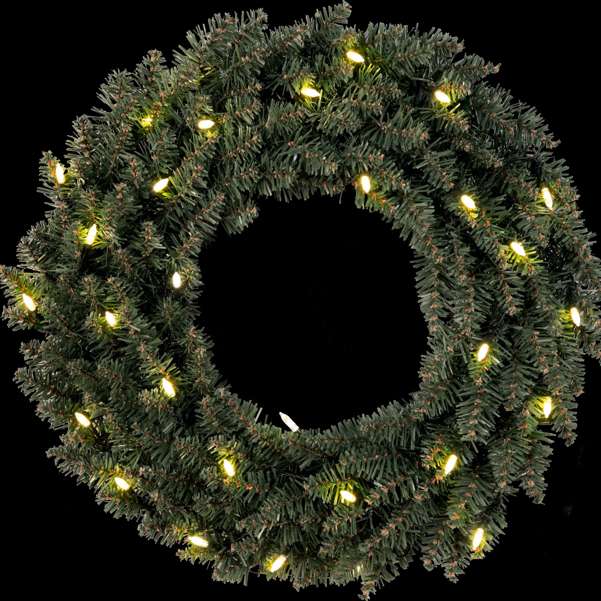 Хвойный венок бристоль с теплыми LED-лампами, хвоя - леска+PVC, 61 см, батарейки, National Tree Company