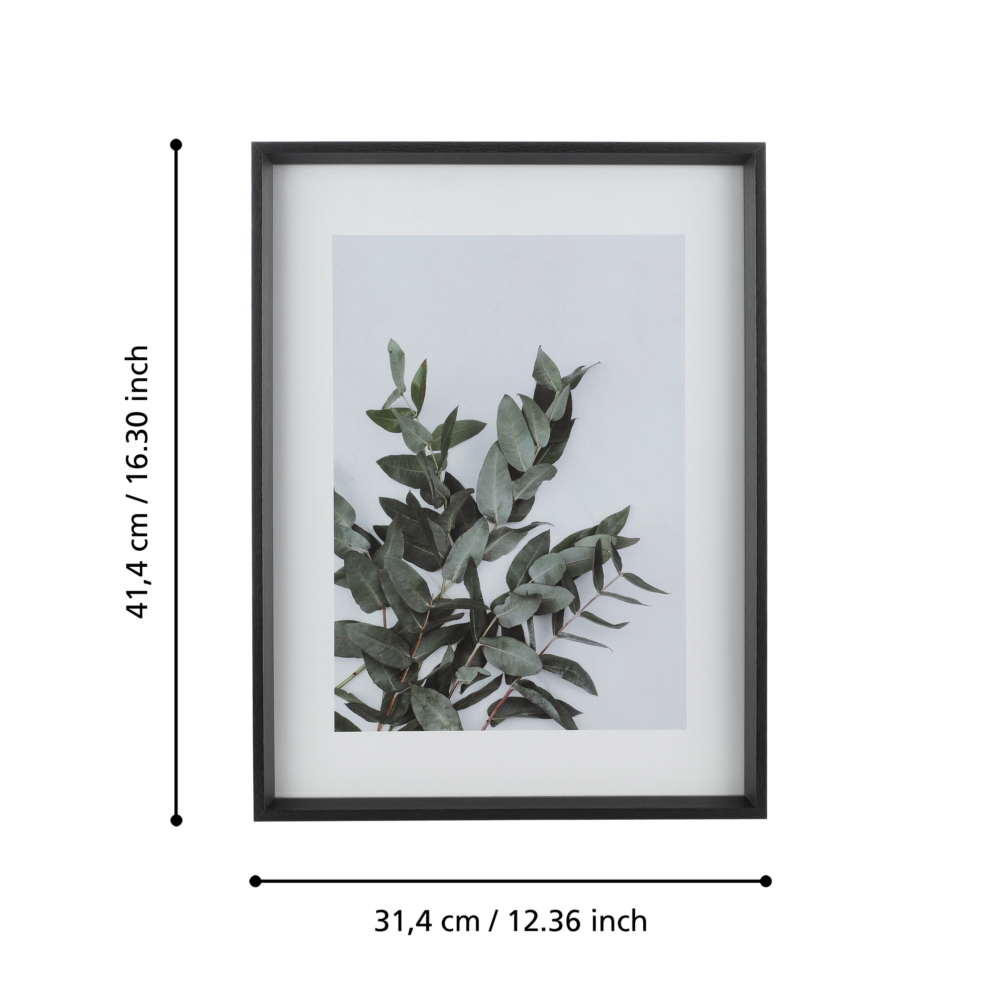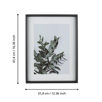 Размеры фоторамки составляют 31,4 см в ширину, 2,5 см в глубину и 41,4 см в высоту. Это позволяет разместить в ней фотографии формата 30 х 40 см.
