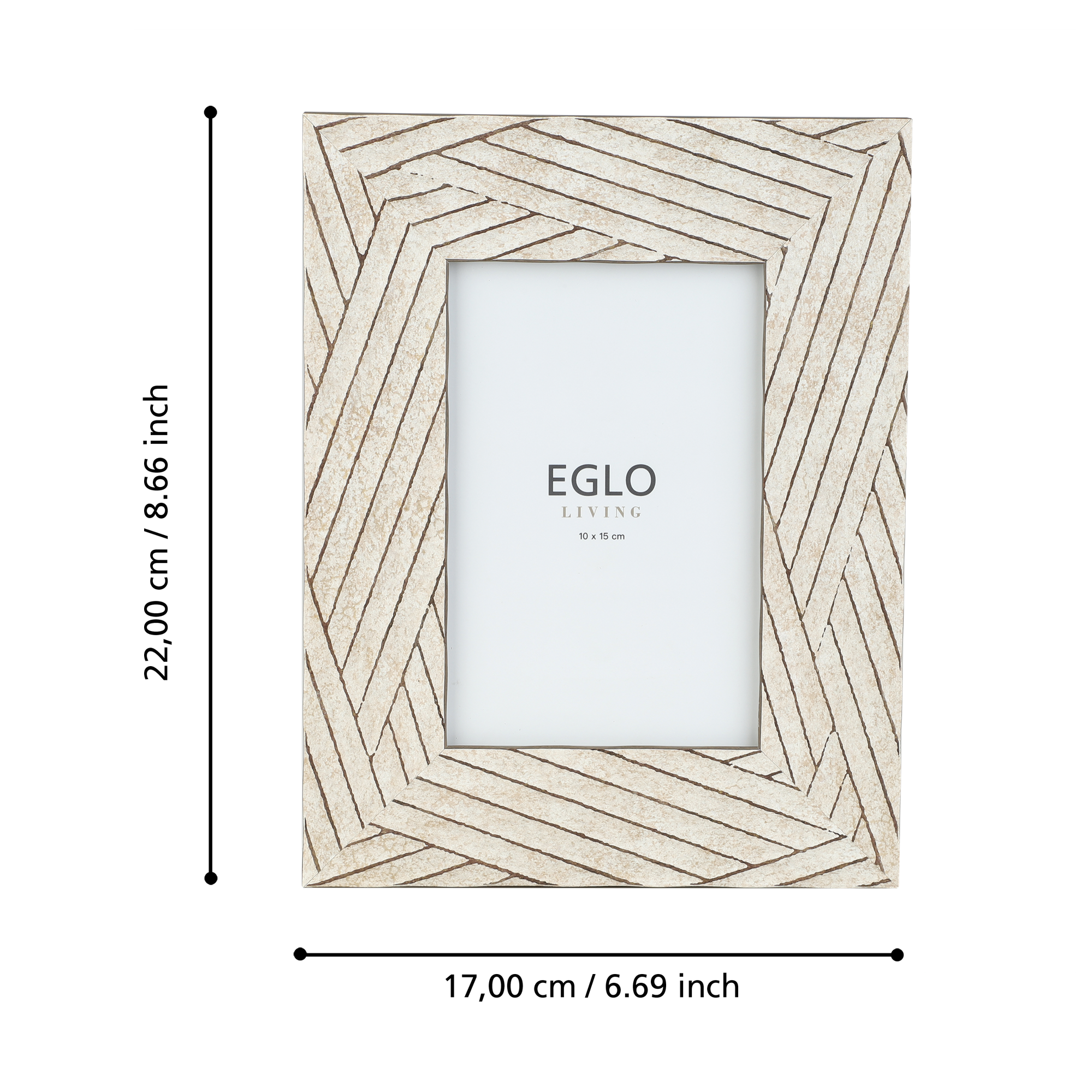 Рамка для фото имеет прямоугольную форму и классический стиль, что позволяет ей гармонично вписаться в любой интерьер. Бежевый цвет рамки подчеркивает элегантность и утонченность дизайна, делая ее прекрасным дополнением к любому декору.