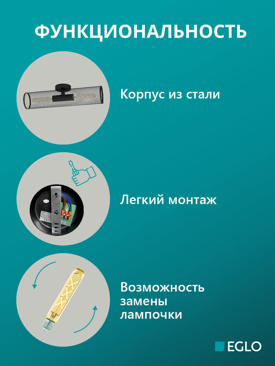 43535 Настенно-потолочный светильник EGLO Redcliffe металлический, лофт, черный: сравнение цен, характеристики, фото, актуальное наличие и цены.
