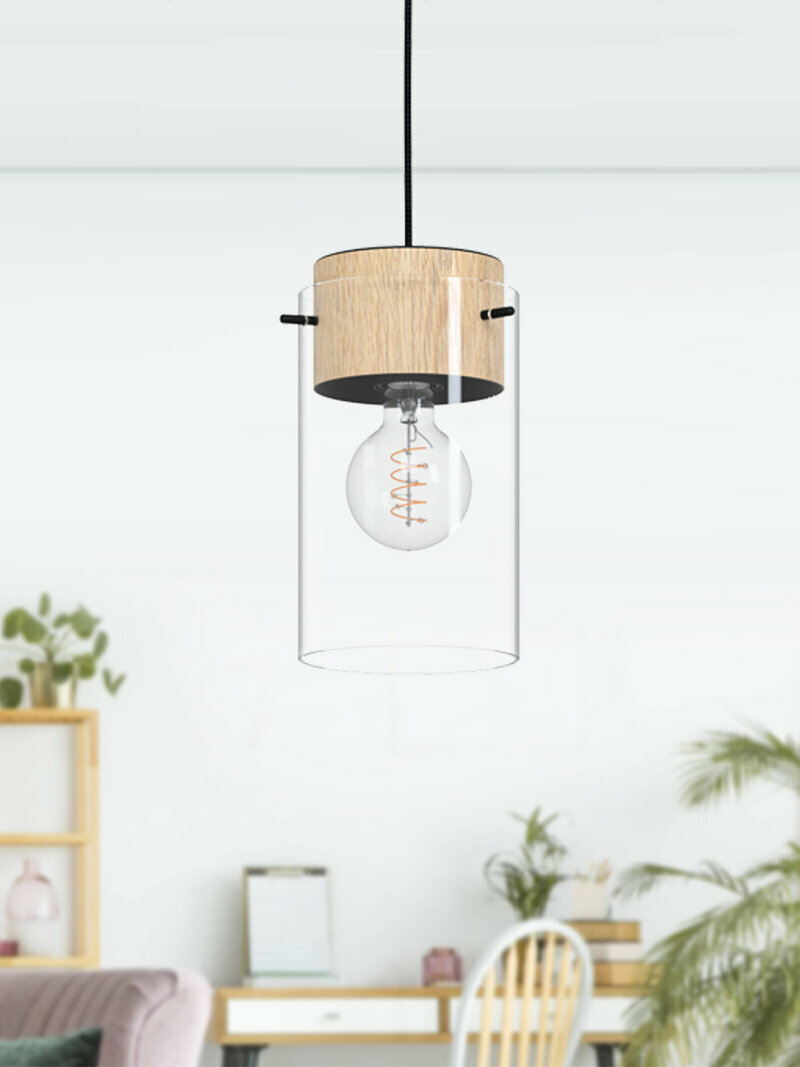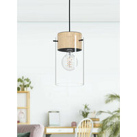 43545 Подвесной светильник EGLO Madreselva, 1Х28W, E27, H1100, Ø140, сталь/дерево/стекло