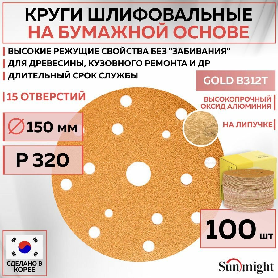 Купить 44314 Шлифовальный абразивный круг SUNMIGHT GOLD B312T, диск на липучке 150 мм, P320, 15 отверстий, 100 шт кругов/упак. с доставкой по всей России. 44314 Шлифовальный абразивный круг SUNMIGHT GOLD B312T, диск на липучке 150 мм, P320, 15 отверстий, 100 шт кругов/упак.: сравнение цен, характеристики, фото, актуальное наличие и цены.