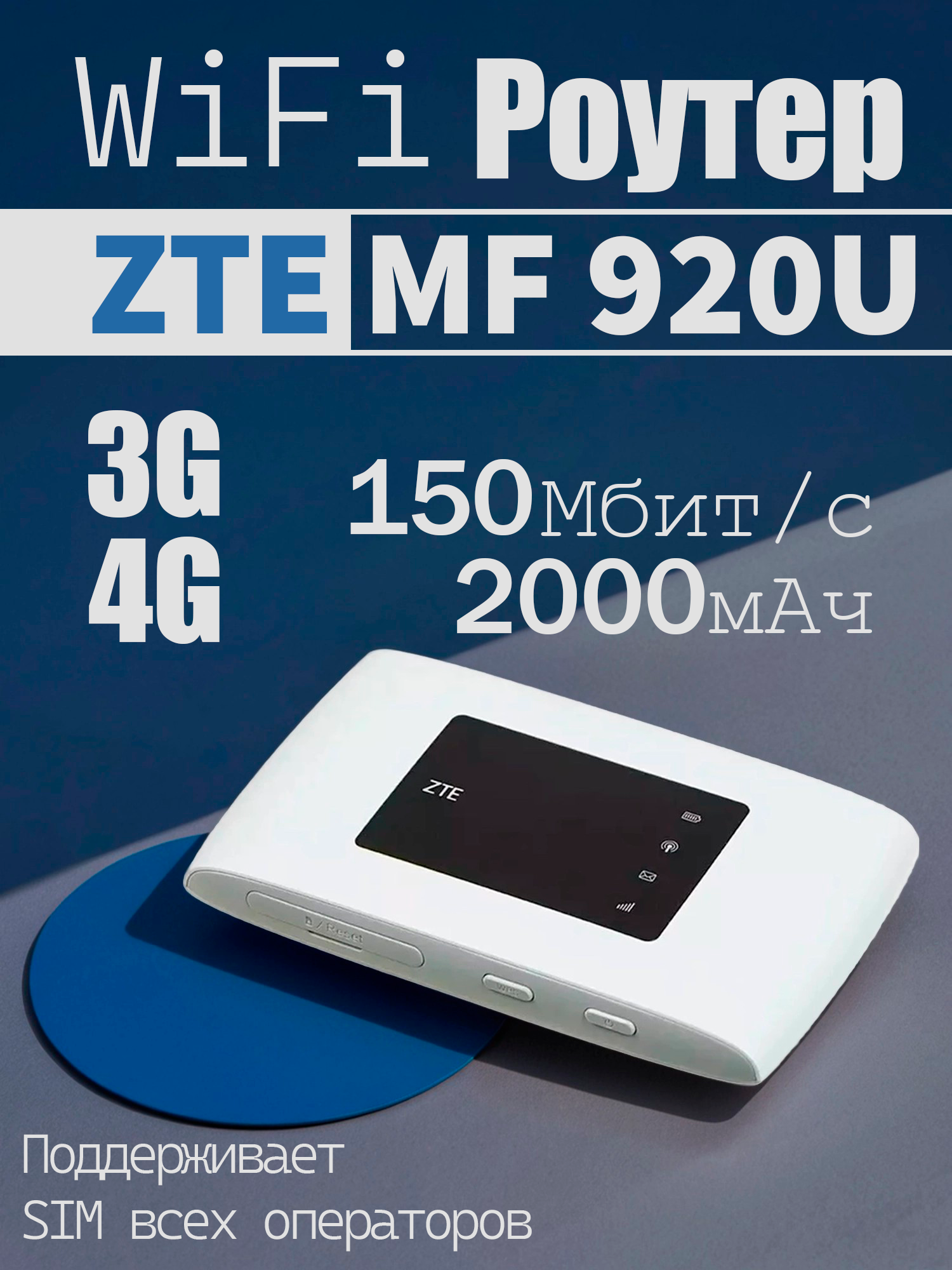 3G 4G роутер ZTE MF920U аккумулятор 2000 мАч 150 Мбит/с, до 10 устройств по Wi-Fi 2,4 ГГц, для сим карт всех операторов: сравнение цен, характеристики, фото, актуальное наличие и цены.