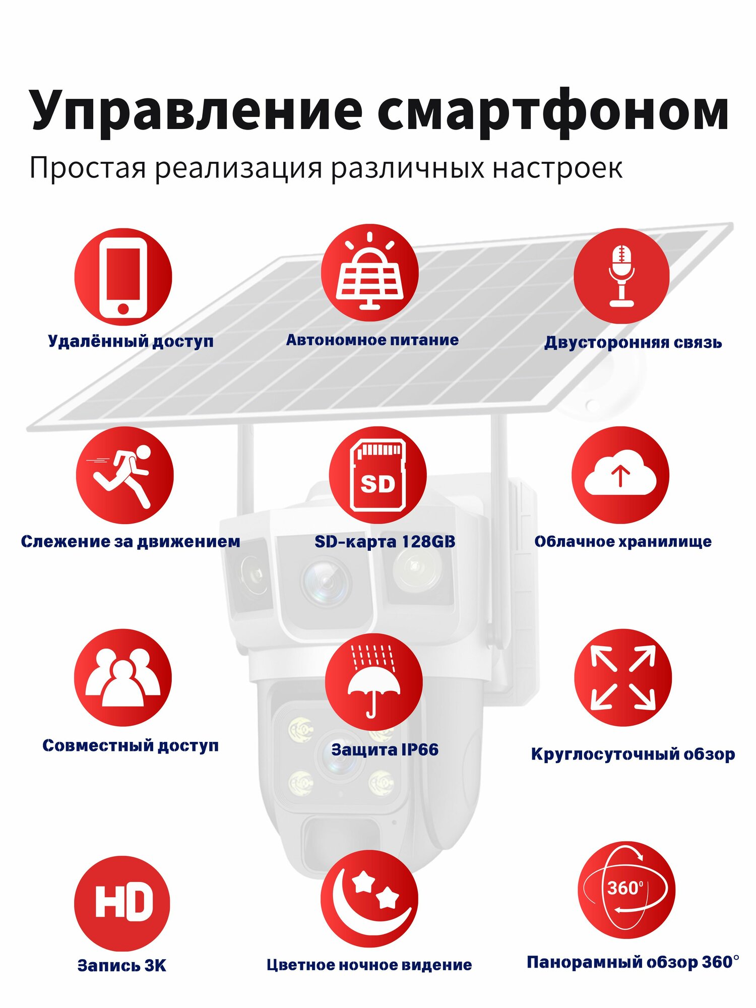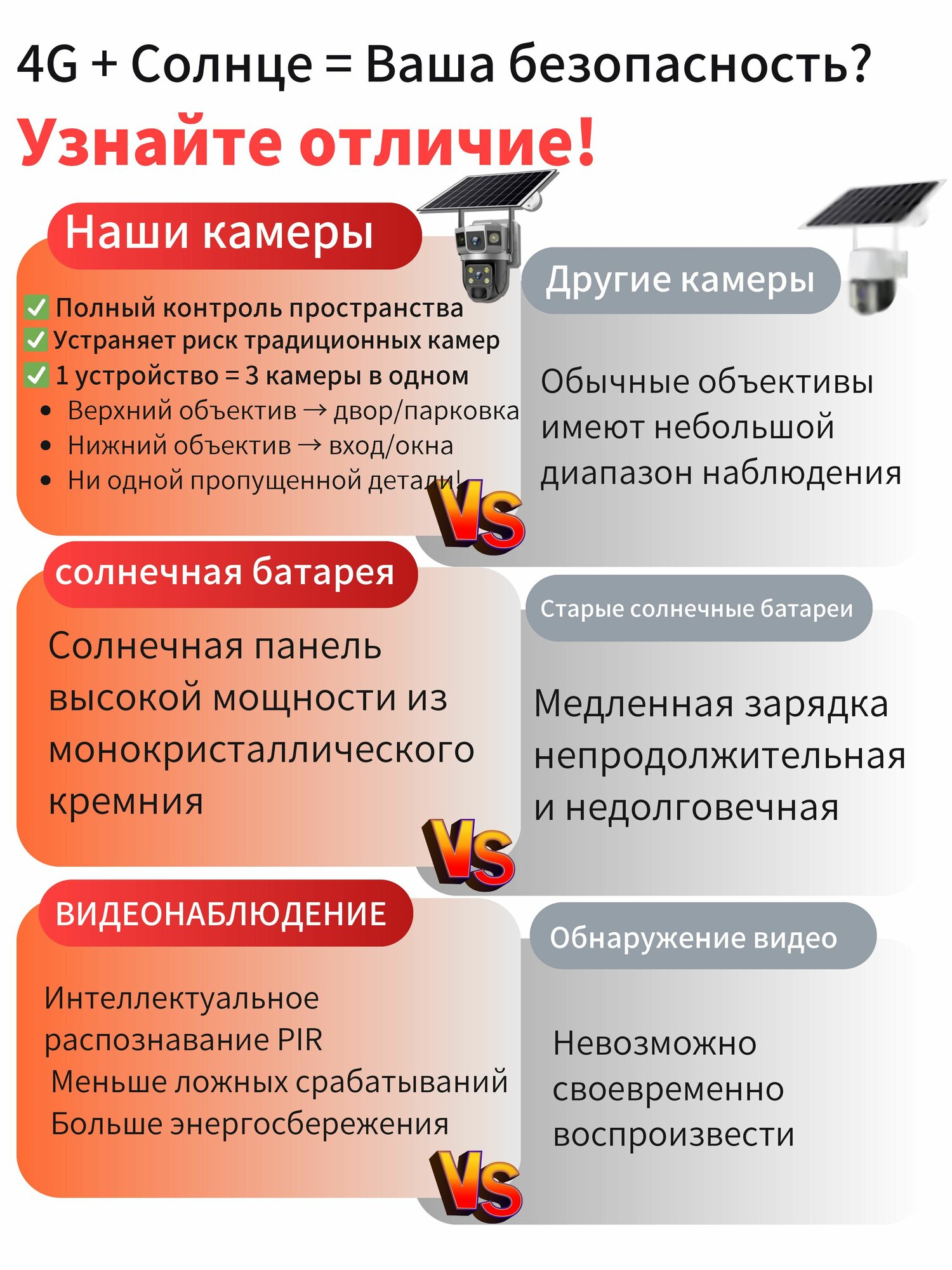 4G Солнечная HD-камера с 2 объективами: ночное видение + двусторонняя аудиосвязь! Для дома/улицы: сравнение цен, характеристики, фото, актуальное наличие и цены.