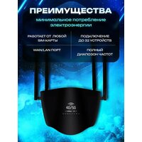 Wi-Fi роутер R106 4G 5G С 4 антеннами Wifi роутер – это лучшее решение получения интернета, как для квартиры и дома, так и для дачи. Маршрутизатор поддерживает частоты Wi-Fi в 2.4 ГГц, что позволяет поддерживать высокоскоростной стандарт передачи данных LTE со скоростью до 300 Мбит/сек. Компактный вай фай роутер работает с сим картой для раздачи интернета, которая идет в подарок к вашему заказу! Данная модель работает во всех диапазонах 4G 5G России. Это позволяет получить качественную скорость интернета при любой удаленности от вышки оператора. 4g LTE wifi роутер работает от адаптера питания и имеет максимальную скорость беспроводного соединения до 300 Мбит/с. К точке доступа возможно подключить до 32 устройств одновременно. Маршрутизатор имеет 2 LAN и 1 WAN порт (разъемы для сетевого кабеля, используемые для организации локальной сети) и поддерживает интерфейсы Ethernet, Слот для SIM-карты. Оснащен 4 внешними антеннами, которые позволяют получить качественную скорость интернета. 5g wifi роутер оснащен световыми индикаторами, которые отображают все активированные функции. Также, возможно использовать роутер в качестве коммутатора. При установке активной сим карты, настройка роутера происходит автоматически. Комплектация: 1 * wifi роутер 1 * Инструкция 1 * Блок питания 1 * Сетевой кабель