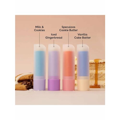 SWEET HOLIDAY MAGIC: Этот праздничный набор бальзамов для губ содержит вкусы Speculoos Cookie Butter, Iced Gingerbread, Milk & Cookies и Vanilla Cake Batter.