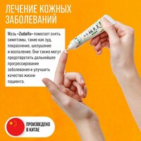 Крем мазь Zudaifu (Зудайфу) - средство номер один в Китае от псориаза, дерматита, витилиго, грибковых поражений и прочих болезней кожи. Показания к применению: псориаз, витилиго, грибковые инфекции, поражение кожи стафилококком и бактериями кандида, лишай, ихтиоз, раздражения и покраснения кожи, кожный зуд, зуд наружных половых органов, акне (угри), укусы комаров и насекомых, потница, экзема, дерматит, атопический дерматит, нейродермит, герпес. Состав: софора китайская, кохия веничная, листья остролиста, амурское пробковое дерево, жгун корень, лотос китайский, гледичия сладкая, корень ясенца, кора из корня шелковицы, хлоргексидин (антисептик), ментол, вода очищенная, белый вазелин. Способ применения: крем от псориаза, экземы и витилиго Zudaifu наносится в небольшом количестве на чистый и сухой участок тела. Использовать ежедневно, не реже двух раз. При этом возникает ощущение легкой свежести, редко – небольшого жжения. Только для наружного применения! Применяется до полного исчезновения неприятных симптомов и еще дополнительно 2-3 недели для достижения устойчивой ремиссии. Производителем мази Зудайфу рекомендован повторный курс спустя месяц. Внимание! Не является лекарственным средством. Противопоказания: Беременность. Период лактации. Не использовать детям младше 3 лет Индивидуальная непереносимость компонентов!