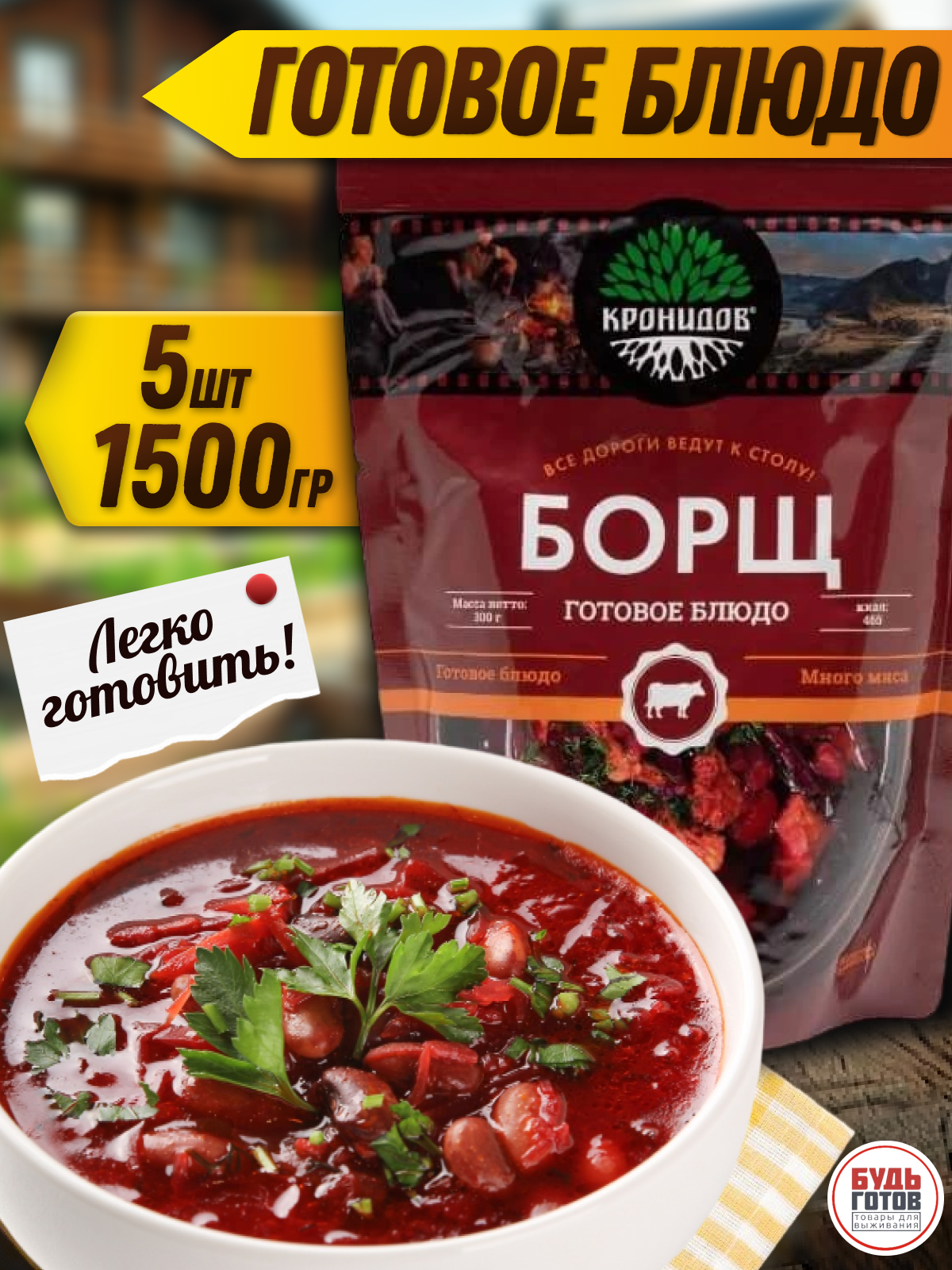 5 шт. Кронидов готовое блюдо Борщ, 300 г, собой / в поход / готовая еда / туризм / в поезд / в дорогу: сравнение цен, характеристики, фото, актуальное наличие и цены.