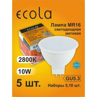 Купить 5 шт. Лампа Экола MR16 GU5.3, Ecola LED 10W, 2800K теплый белый свет, матовая MR16GU с доставкой по всей России.