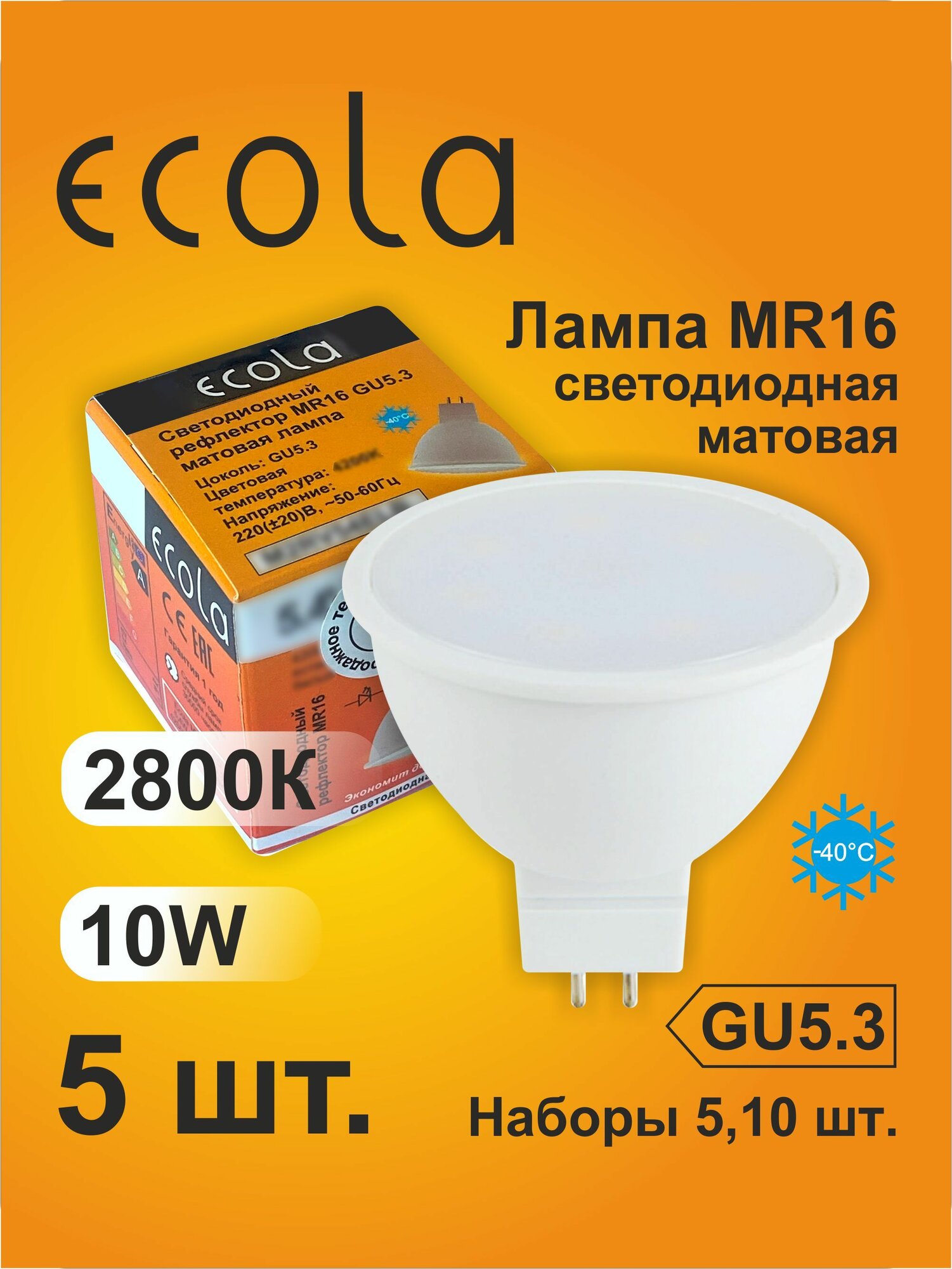 5 шт. Лампа Экола MR16 GU5.3, Ecola LED 10W, 2800K теплый белый свет, матовая MR16GU: сравнение цен, характеристики, фото, актуальное наличие и цены.