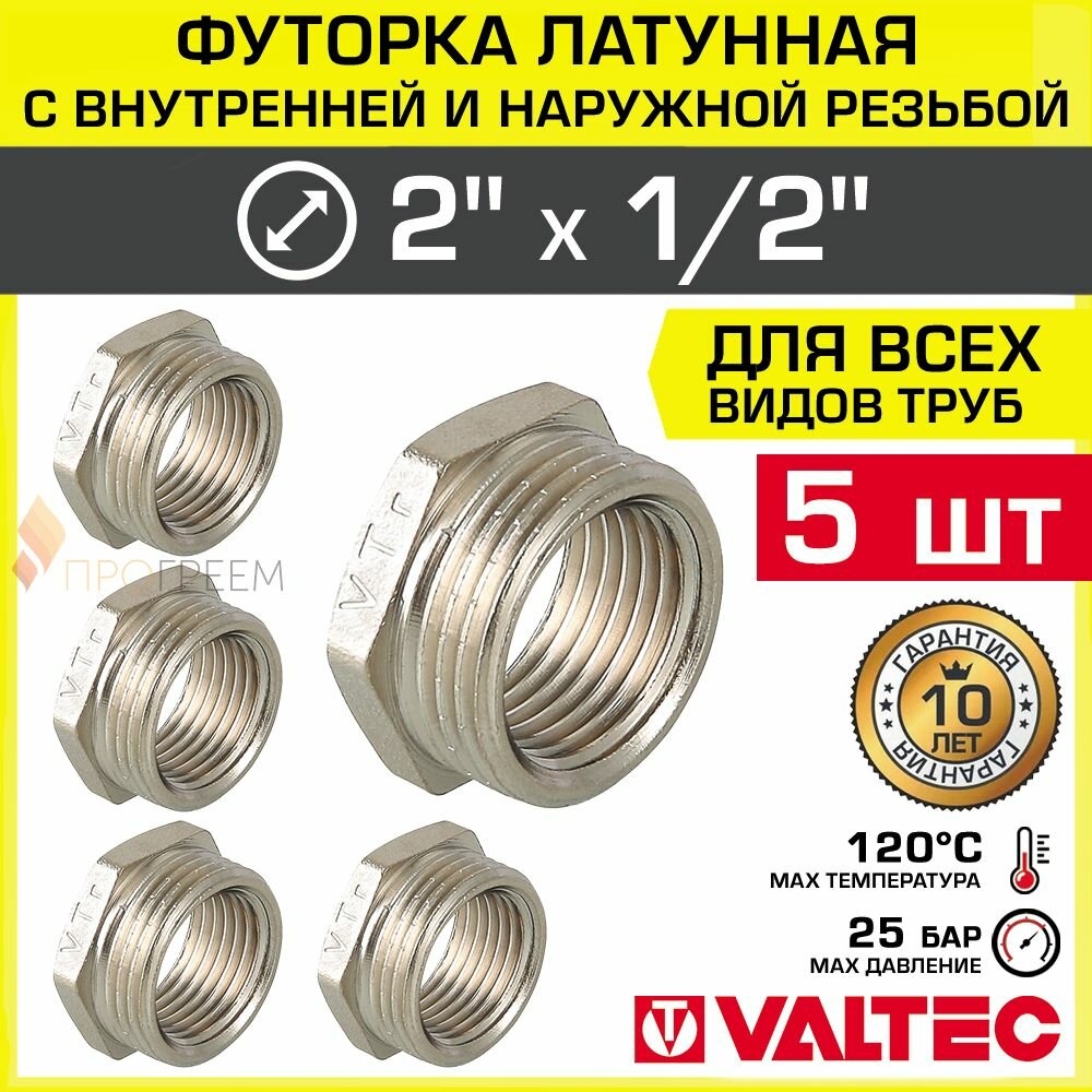 Купить 5 шт — Футорка переходная 2″ х 1/2″ НР-ВР VALTEC латунный / Фитинг-переходник резьбовой для соединения труб разного диаметра, VTr.581. N.0904 с доставкой по всей России.