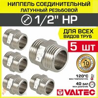 Купить 5 шт — Ниппель соединительный 1/2″ НР VALTEC латунный сантехнический / Фитинг-адаптер ДУ 15 с наружной резьбой для соединения труб, обвязки системы отопления и водоснабжения, VTr.582. N.0004 с доставкой по всей России.