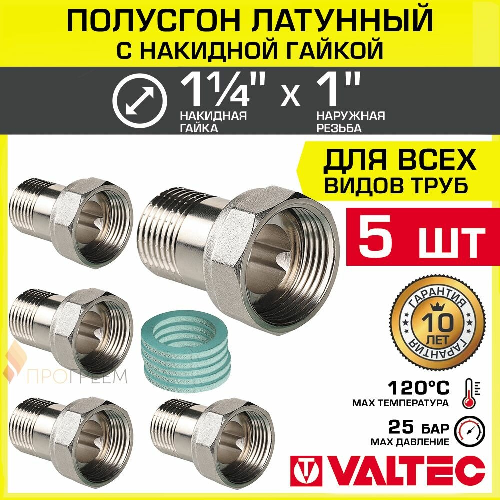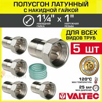 Купить 5 шт — Полусгон 1 1/4″ Накидная гайка х 1″ НР VALTEC, латунный никелиров. / Фитинг резьбовой для монтажа арматуры, расширительного бака, котла к трубе ДУ25-32 с разъемным соединением, VTr.613. N.0706 с доставкой по всей России.