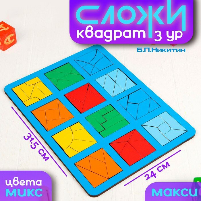 6 шт. Настольная игра «Сложи квадрат» Б. П. Никитин, 3 уровень (макси), микс, ячейка 6×6 см: сравнение цен, характеристики, фото, актуальное наличие и цены.