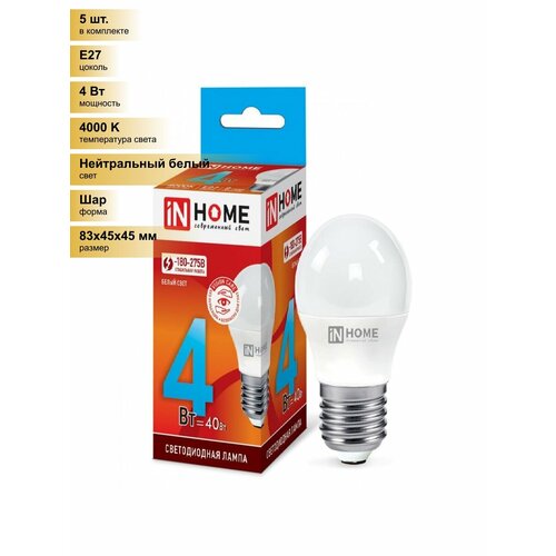 (5 шт.) Светодиодная лампочка ASD/inHome VC шар P45 E27 4W(360lm) 4000К 4K 83×45 (без пульсации) 0593 Нейтральный белый. Цоколь E27: сравнение цен, характеристики, фото, актуальное наличие и цены.