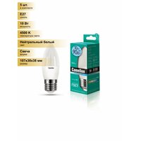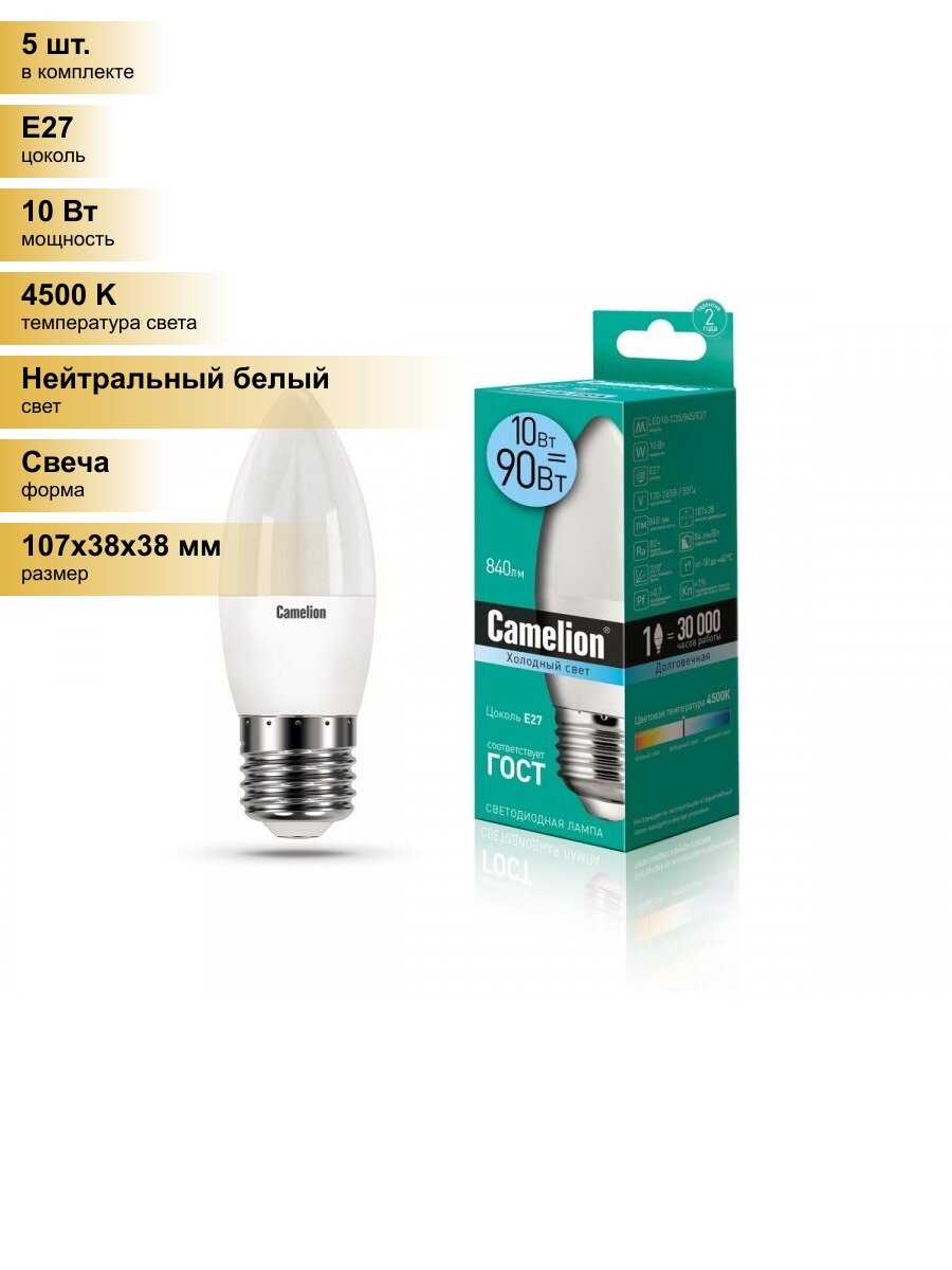 (5 шт.) Светодиодная лампочка Camelion Свеча E27 10W(840lm 220°) 4500K 4K матов. 107×38 пластик LED10-C35/845/E27 Нейтральный белый. Цоколь E27: сравнение цен, характеристики, фото, актуальное наличие и цены.