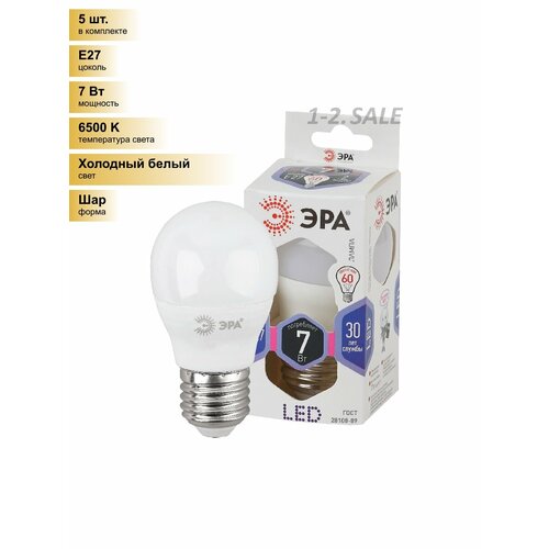 (5 шт.) Светодиодная лампочка ЭРА стандарт шар P45 E27 7W(560lm) 6500K P45-7W-860-E27 0331 Холодный белый. Цоколь E27: сравнение цен, характеристики, фото, актуальное наличие и цены.