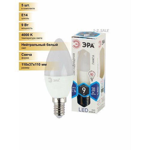 (5 шт.) Светодиодная лампочка ЭРА стандарт свеча B35 E14 9W(720lm) 4000K 4K 110×37 B35-9w-840-E14 6702 Нейтральный белый. Цоколь E14: сравнение цен, характеристики, фото, актуальное наличие и цены.