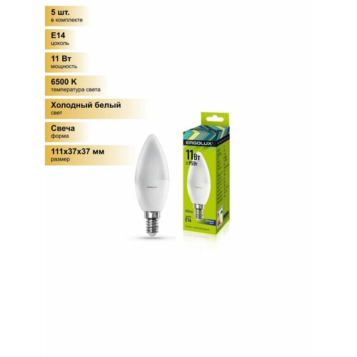 (5 шт.) Светодиодная лампочка Ergolux свеча C35 E14 11W(925lm 220°) 6500K 6K матовая 111×37 LED-C35-11W-E14-6K Холодный белый. Цоколь E14: сравнение цен, характеристики, фото, актуальное наличие и цены.