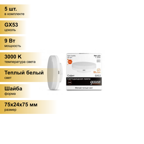(5 шт.) Светодиодная лампочка Gauss Elementary GX53 9W(660lm) 3000K 2K 75×24 пластик/алюм. 83819 Теплый белый. Цоколь GX53: сравнение цен, характеристики, фото, актуальное наличие и цены.