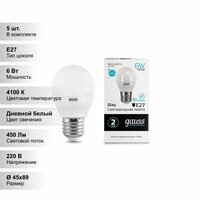 (5 шт.) Светодиодная лампочка Gauss Globe G45 6Вт 180-240В 4100K E27: сравнение цен, характеристики, фото, актуальное наличие и цены.