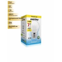 (5 шт.) Светодиодная лампочка Smartbuy шар G45 E27 7W(550lm) 3000K 2K матовая пластик SBL-G45-07-30K-E27 Нейтральный белый. Цоколь E27: сравнение цен, характеристики, фото, актуальное наличие и цены.